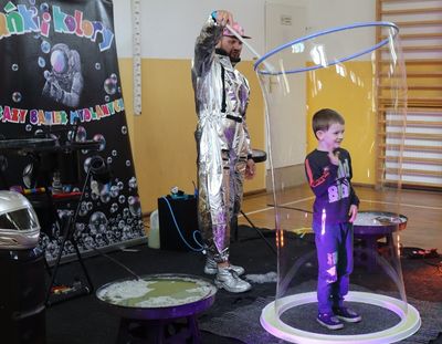 8 maja w naszym przedszkolu odbył się niesamowity pokaz baniek mydlanych. Do naszego przedszkola zawitał animator z grupy „Bańki i Kolory”.